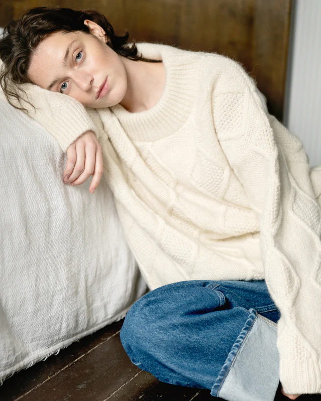 If a pop of colour is what you need this autumn, the Campa Jumper is another stunning merino knit, with a similar cut to the Silene, creating a boxy and oversized silhouette. Again pair with the willow wide leg but in the light blue wash and a pair of colourful sneakers for a pop of joy.