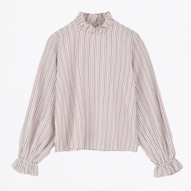Pair the Emmerson trousers with the cornflower blouse, with contrasting pink and burgundy detailing, for a more polished yet contemporary look. Or go for tonal comfort, with the Dean V-neck jumper. Style with ballet flats or chunky loafers.